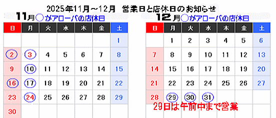 ![]() ![]() 営 業 時 間 : 毎週月、月2回日・月 午前10:00 ~ 午後18:00 |
